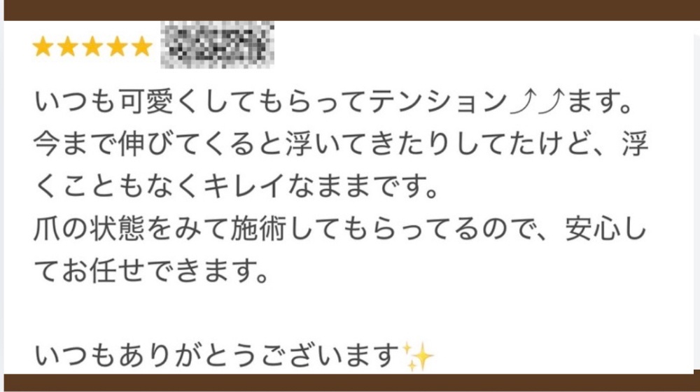 | Q.施術時間はどのぐらいですか? | メニューによっても異なりますが ワンカラーは90分(オフ込み) シンブルアートは120分などなどデザインによって 施術時間がことなりますのでお急ぎの方は事前にお知らせくださるとスムーズです◎ |